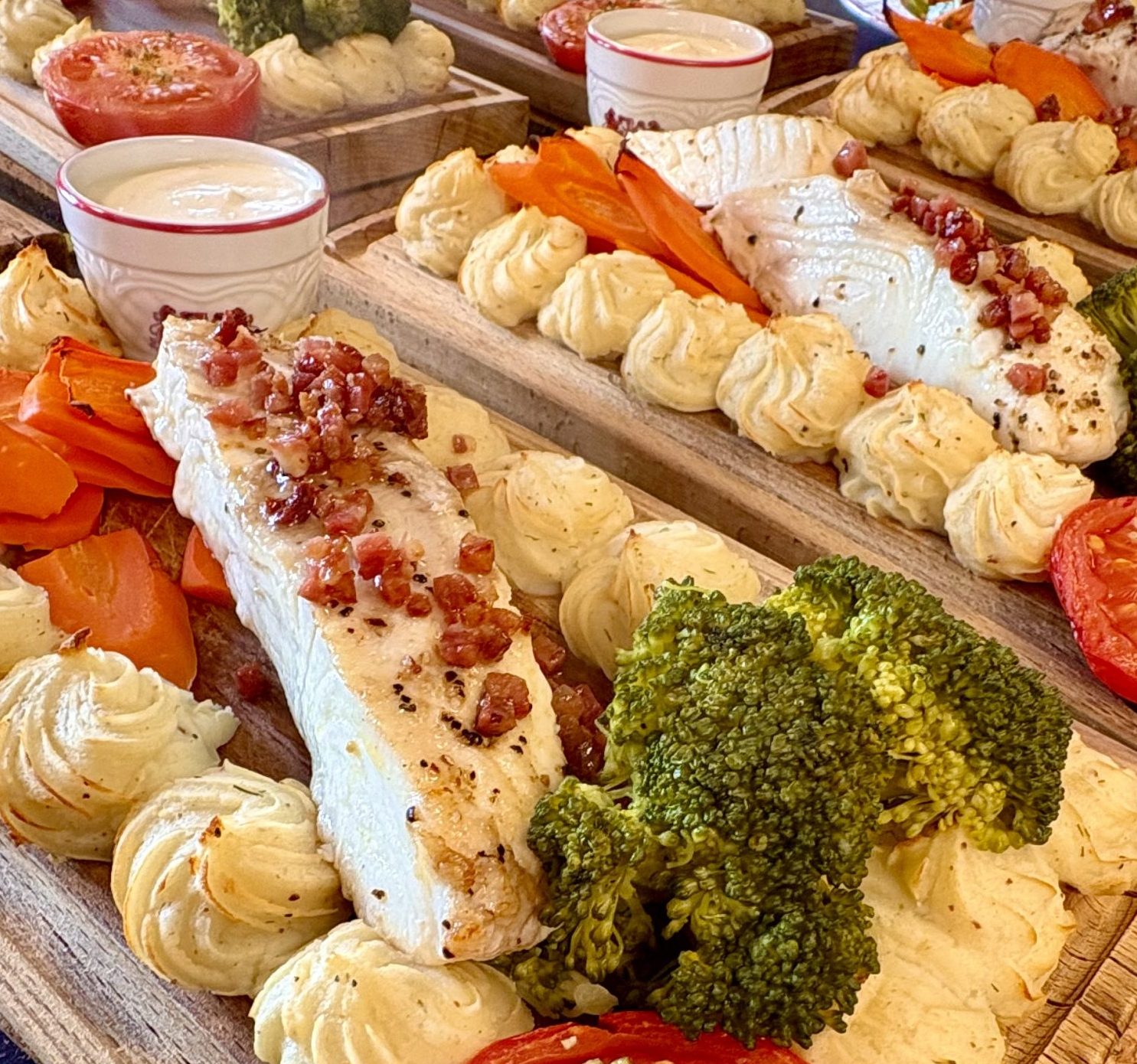 Våre menyer består av ulike retter basert på tradisjonelle oppskrifter med lokal råkost. Ved sommeråpent er det faste menyer som gjelder, Informer gjerne om allergier på forhånd.